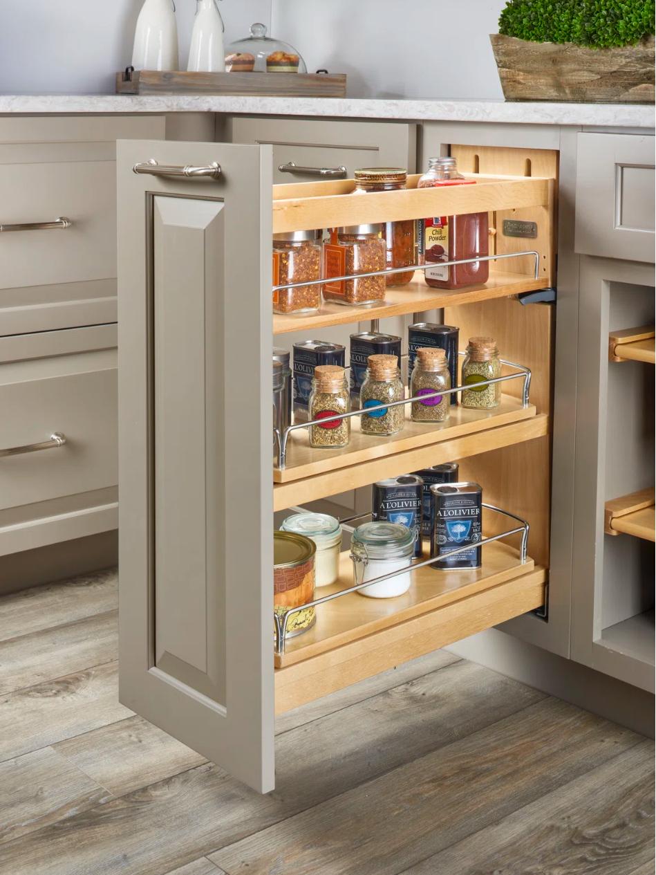 Look inside the cabinets. See our custom spice pull-outs, dovetail drawers, and pantry organization systems.