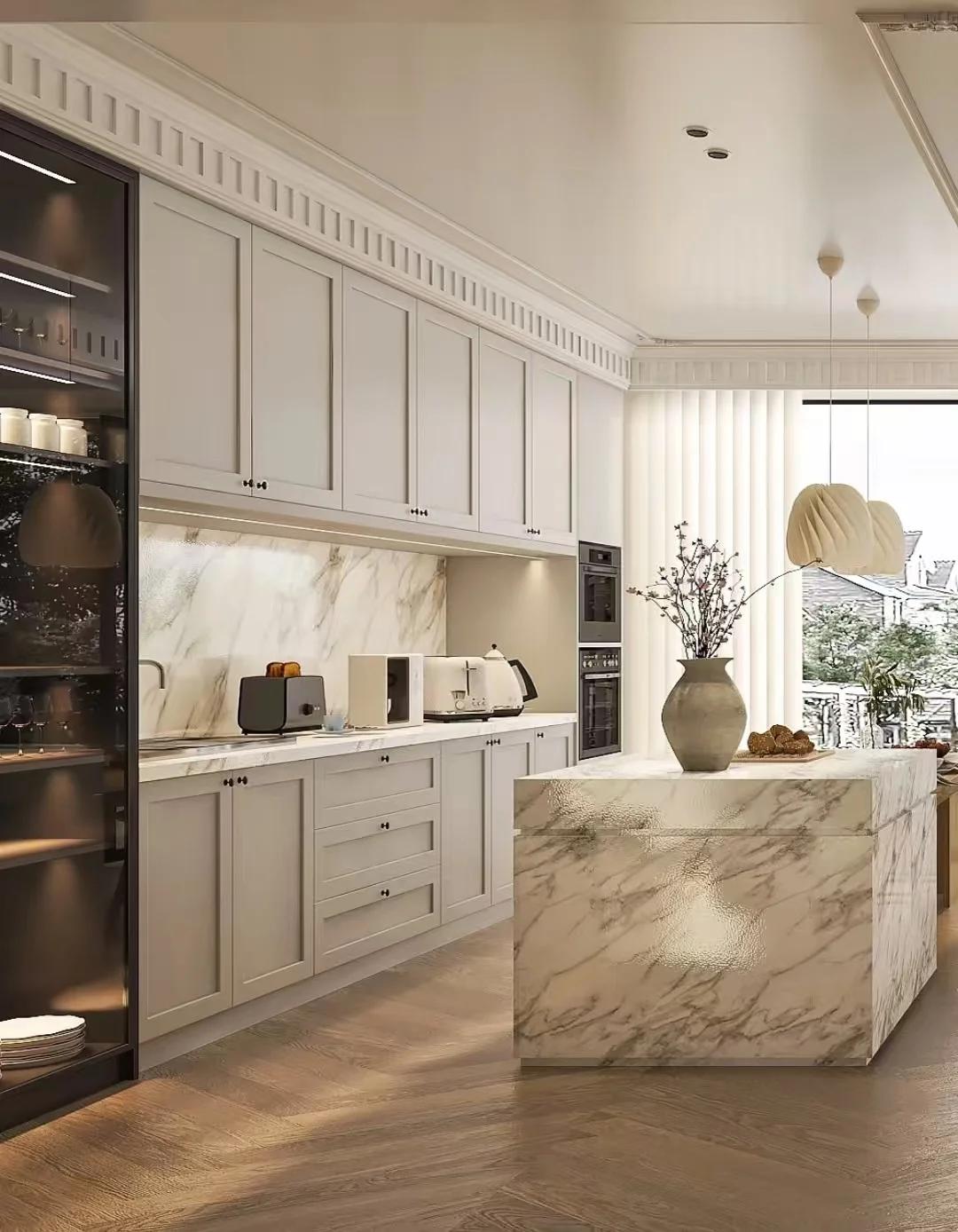 Floor-to-Ceiling Cabinetry: Maximizing vertical storage in standard 8ft and 9ft ceilings.